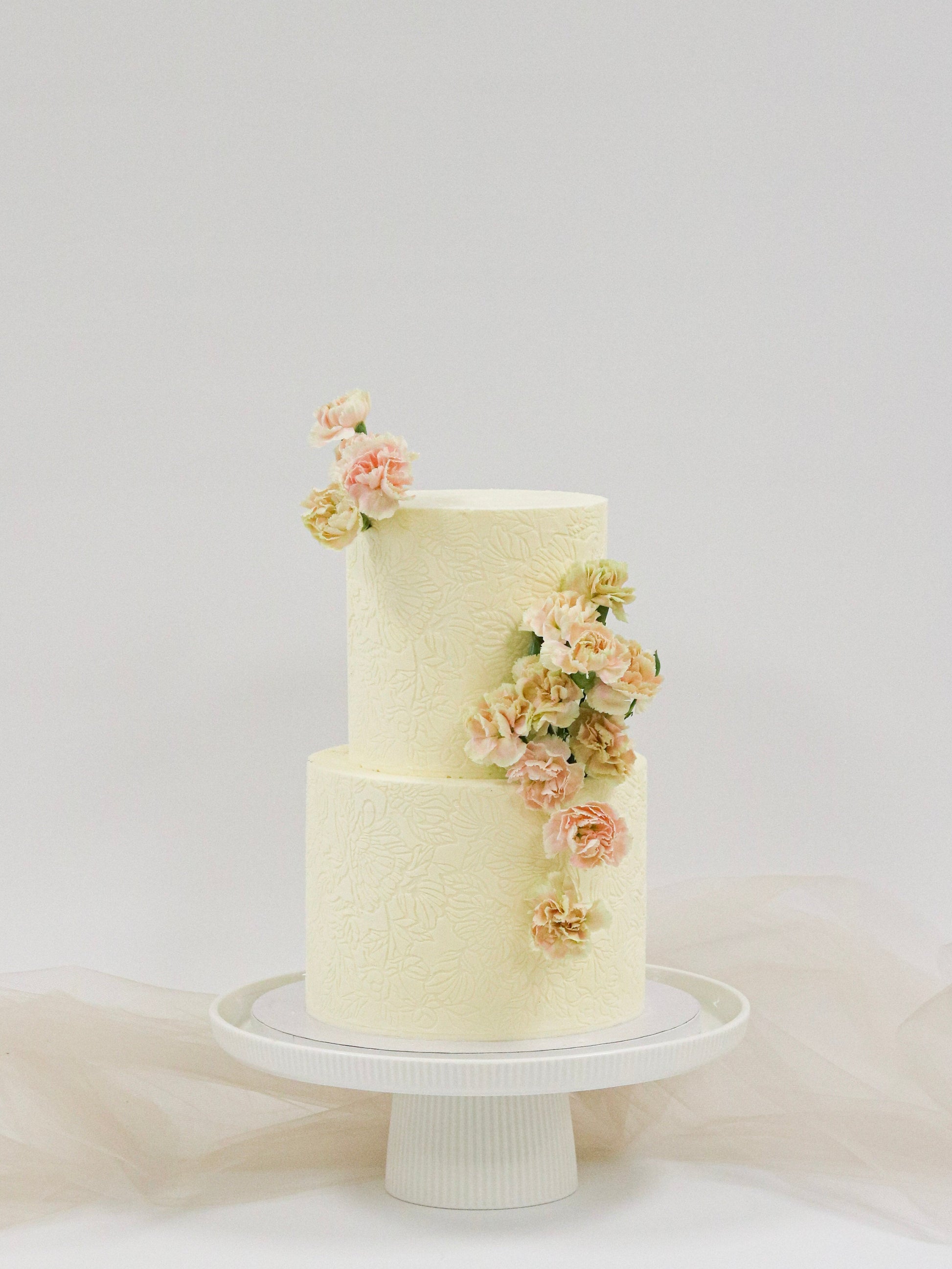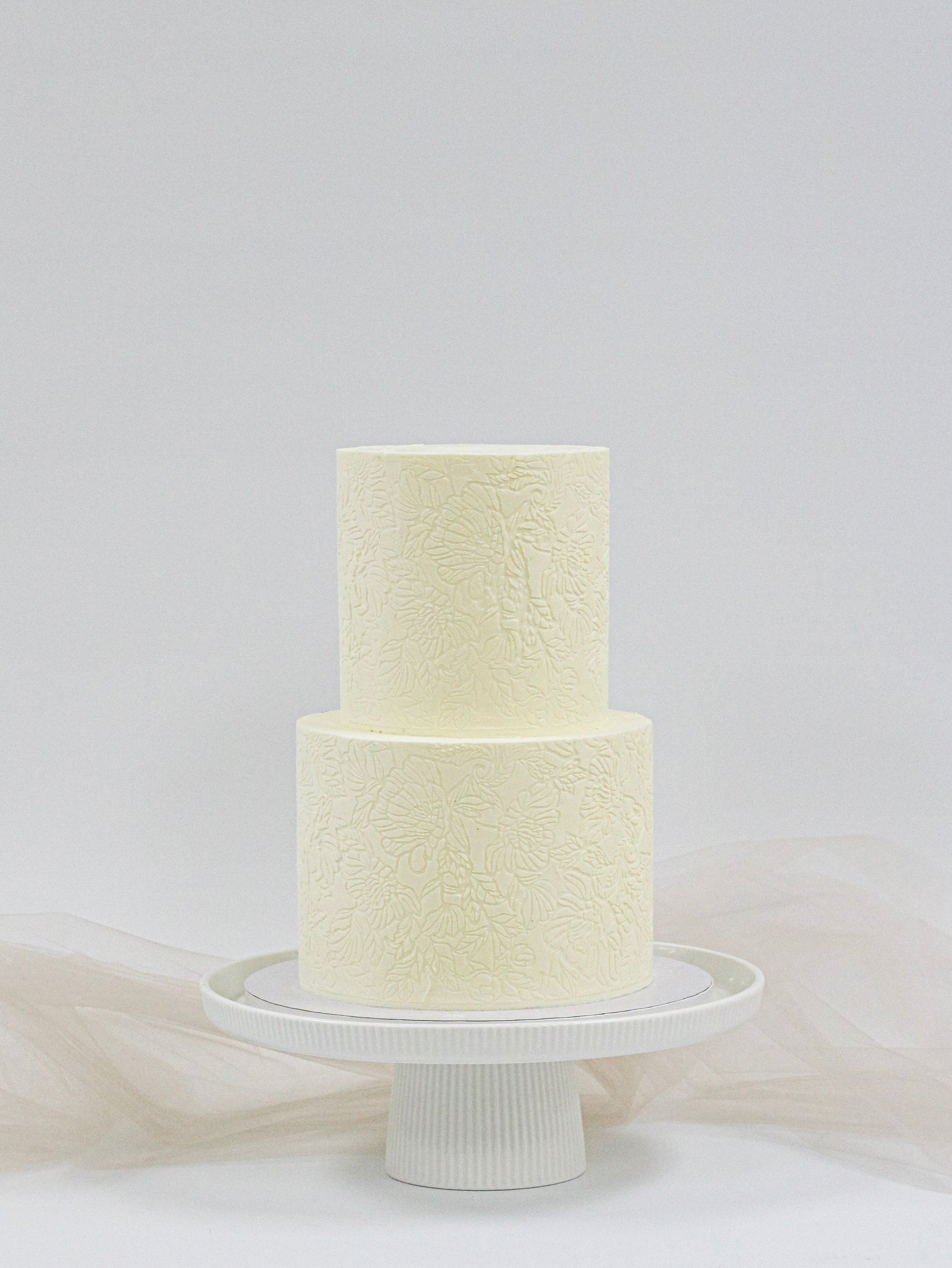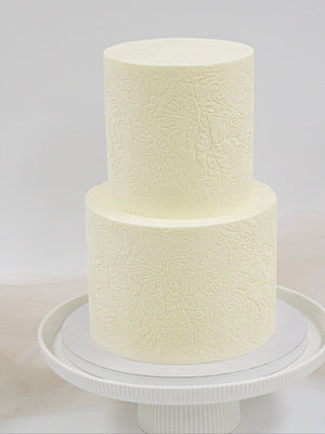 Delicate and understated, a stenciled buttercream cake creates an almost textile-like effect. Take this beauty to the next level and have our team add flowers for you, or let your florist get creative on site.